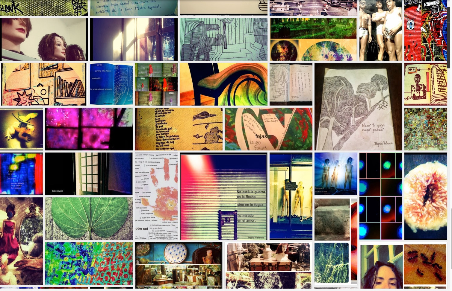 Las ligaduras, los textos-texturizados, los filmes, los encuentros con el trazo multiversal y pluriposible, el concepto del concepto, las formas primigenias, las formas no visibles del traslado, los hechos multimedia, las palabras multicéntricas. Aquí van, tal vez, neurodivergentes, neurodiciendo, neurohiperformándose.